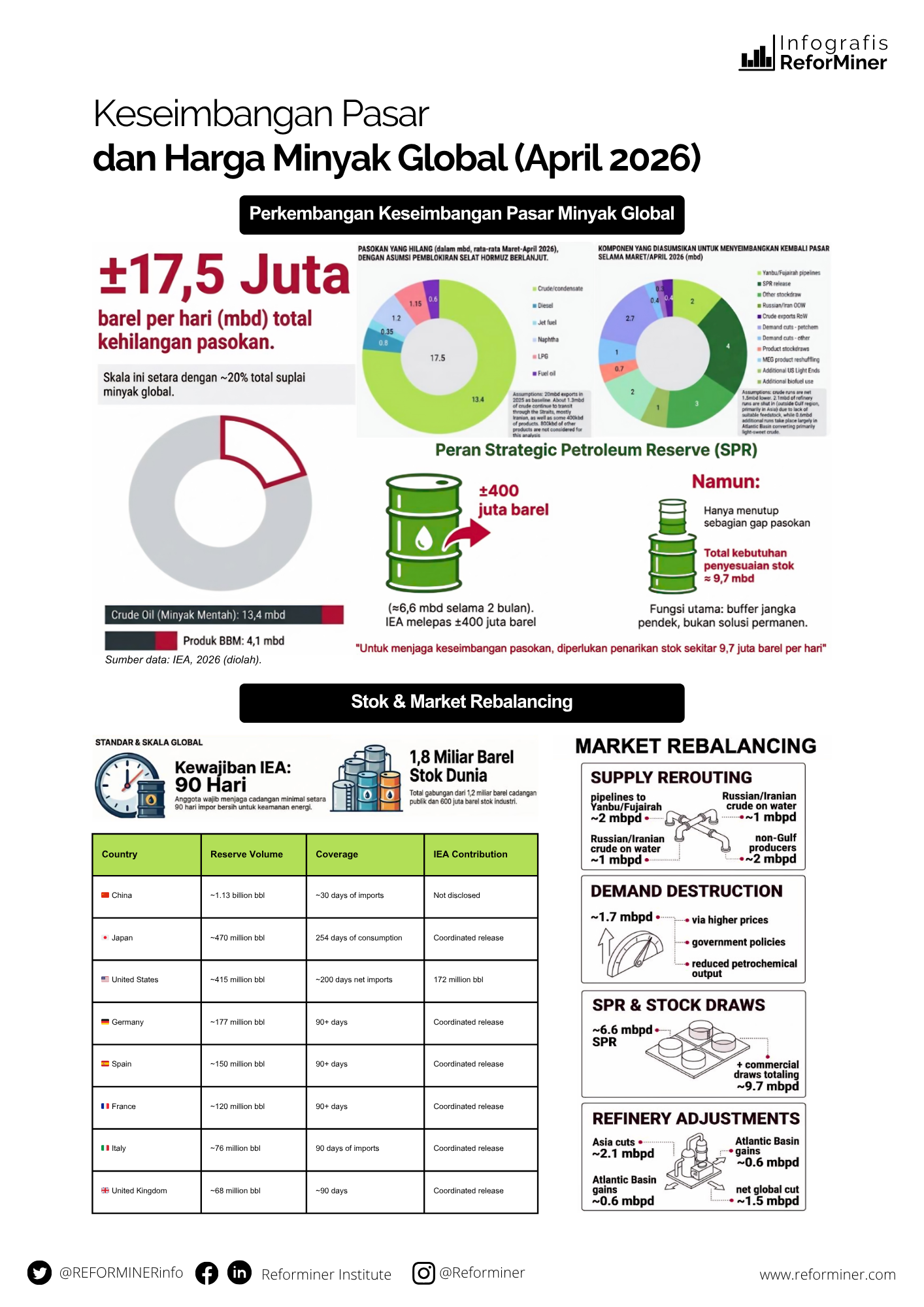 HomeInfografis-SimulasiKeseimbangan Pasar dan Harga Minyak Global Infografis-SimulasiMinyak dan Gas Keseimbangan Pasar dan Harga Minyak Global By Admin April 18, 2026 0 14 Share FacebookTwitterPinterestWhatsApp Share FacebookTwitterPinterestWhatsApp Previous articleMenakar Resiliensi APBN 2026 terhadap Gejolak Harga MinyakNext articleStatus Fiskal dan Arah Kebijakan Pemerintah Adminhttp://www.reforminer.com/ RELATED ARTICLES Minyak dan Gas Respon dan Kebijakan Harga BBM ASEAN terhadap Lonjakan Harga Minyak Global April 18, 2026 Minyak dan Gas Dampak Tarif Tol Hormuz terhadap Harga Minyak April 18, 2026 Infografis-Simulasi Status Fiskal dan Arah Kebijakan Pemerintah April 18, 2026 LEAVE A REPLY Cancel reply Comment: Please enter your comment! Name:* Please enter your name here Email:* You have entered an incorrect email address! Please enter your email address here Website: Save my name, email, and website in this browser for the next time I comment. Δ Most Popular Respon dan Kebijakan Harga BBM ASEAN terhadap Lonjakan Harga Minyak Global April 18, 2026 Dampak Tarif Tol Hormuz terhadap Harga Minyak April 18, 2026 Daya Tahan Pasokan dan Durasi Konflik Global April 18, 2026 Status Fiskal dan Arah Kebijakan Pemerintah April 18, 2026 Load more Recent Comments